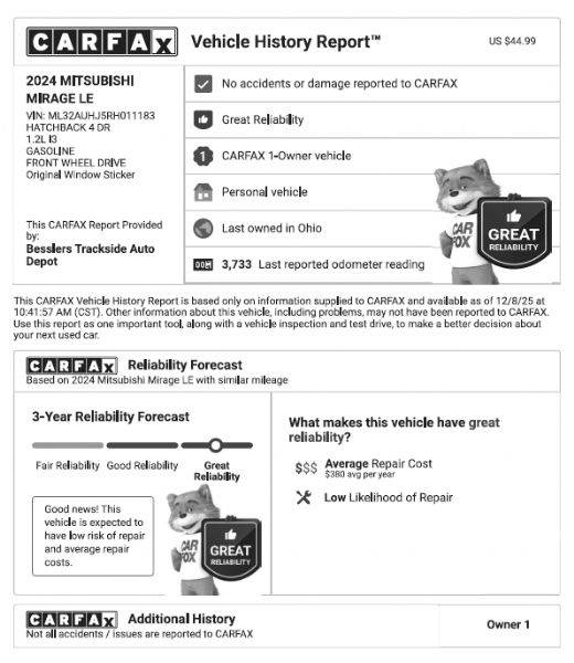 2024 Mitsubishi Mirage LE - $18,500