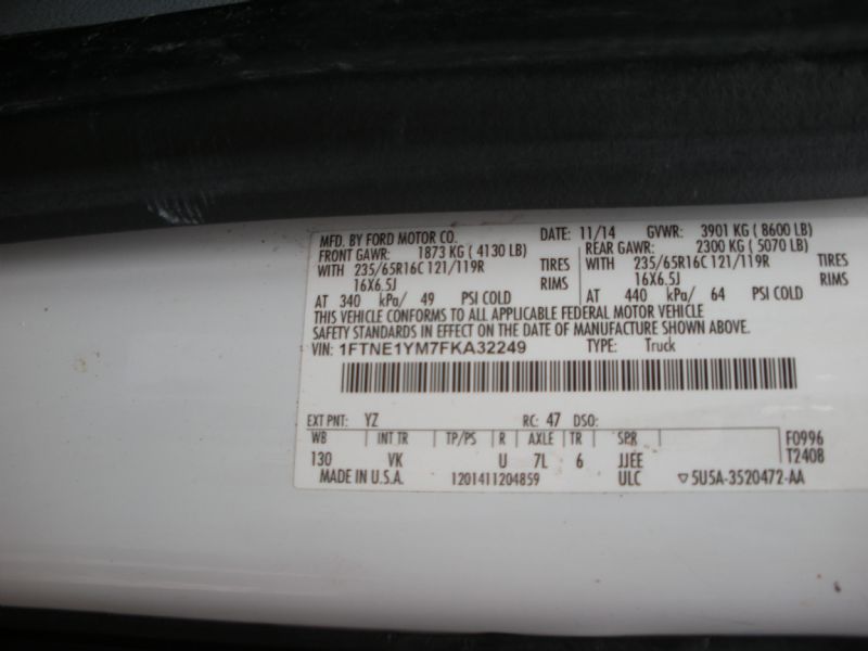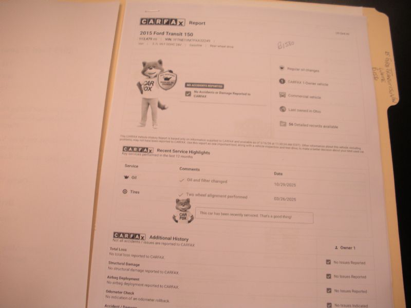 Other Notes: 2015 Ford Transit Cargo 150 Panel Van