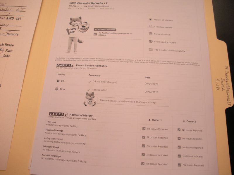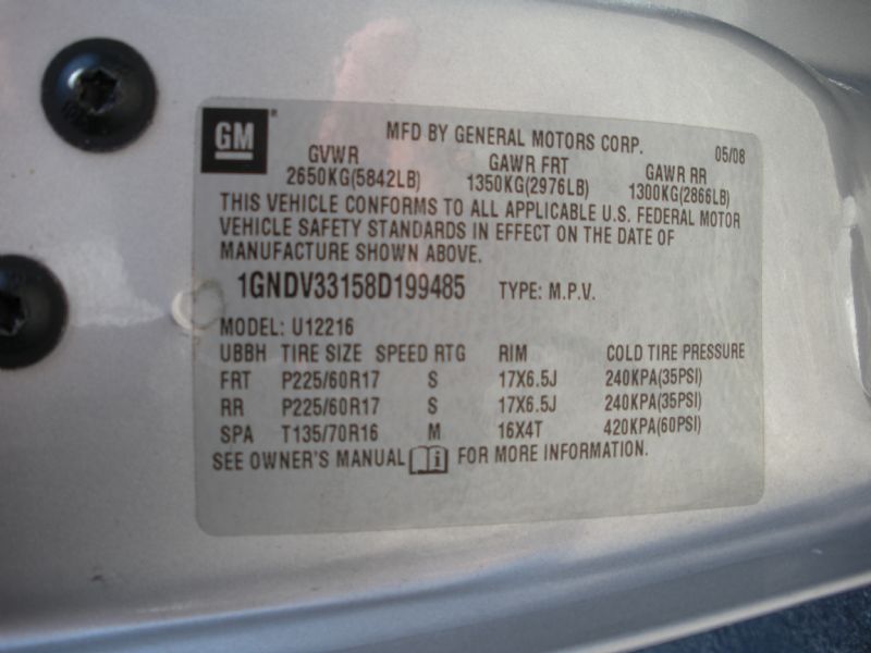 Other Notes: 2008 Chevrolet Uplander LT